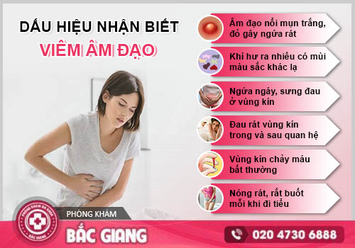 ► Viêm âm đạo: Là một bệnh lý viêm nhiễm phụ khoa khá phổ biến ở nữ giới thường gây ngứa ngáy, khí hư ra nhiều và có mùi hôi, tiểu rắt tiểu buốt, đau khi quan hệ... Nếu viêm âm đạo không được chữa dứt điểm có thể lây lan gây viêm nhiễm cho các cơ quan khác ảnh hưởng sức khỏe và cuộc sống.